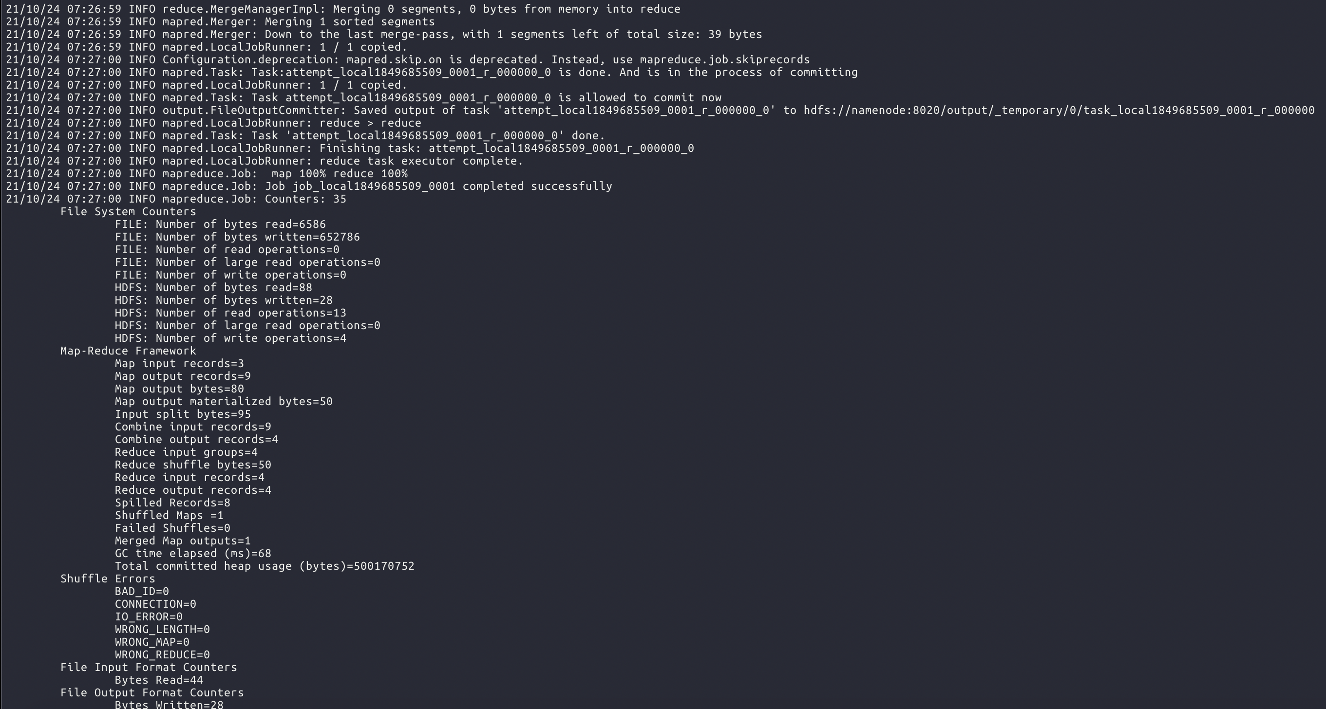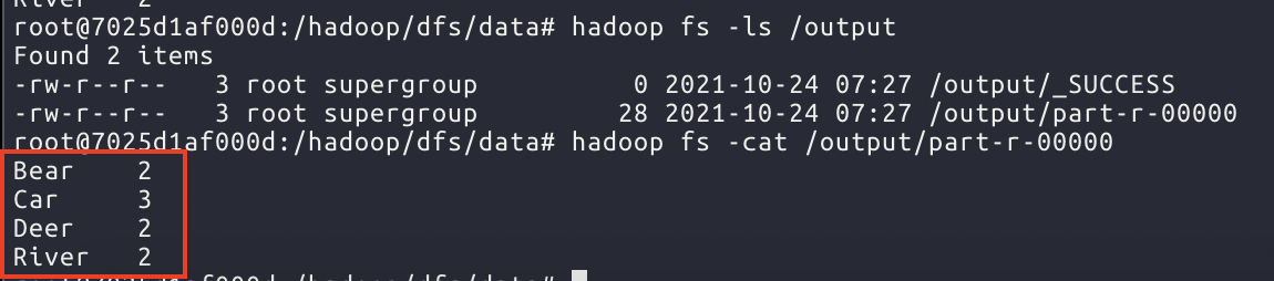 hadoop fs -cat /output/part-r-00000