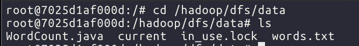 컨테이너에 접속한 후, 이전에 Volume으로 연동해준 경로로 이동한다. (/hadoop/dfs/data)