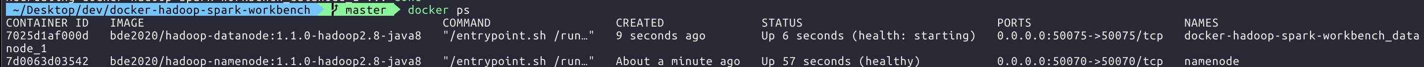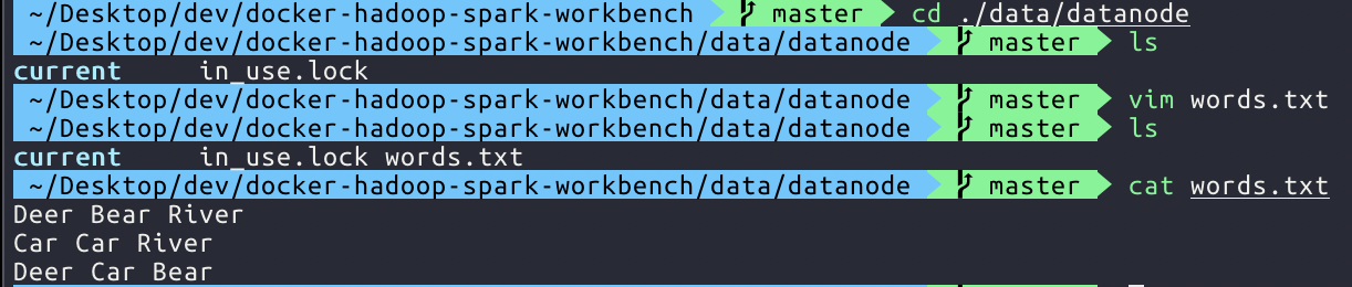docker exec -it docker-hadoop-spark-workbench_datanode_1 /bin/bash