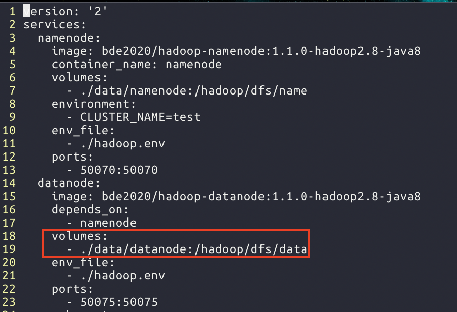 위 이미지 기준으로 ./data/datanode라는 내 컴퓨터의 경로가 컨테이너 안에서는 /hadoop/dfs/data에 연동되어있다.