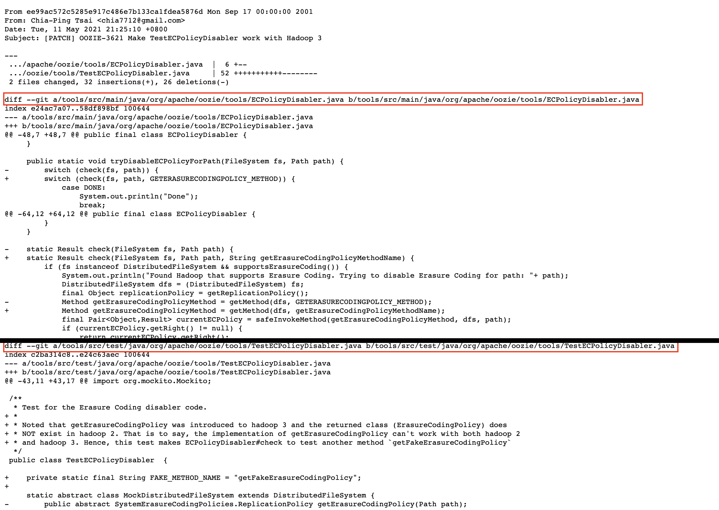 patch -p9 TestECPolicyDisabler.java < OOZIE-3621-TestECPolicyDisabler.v0.patch