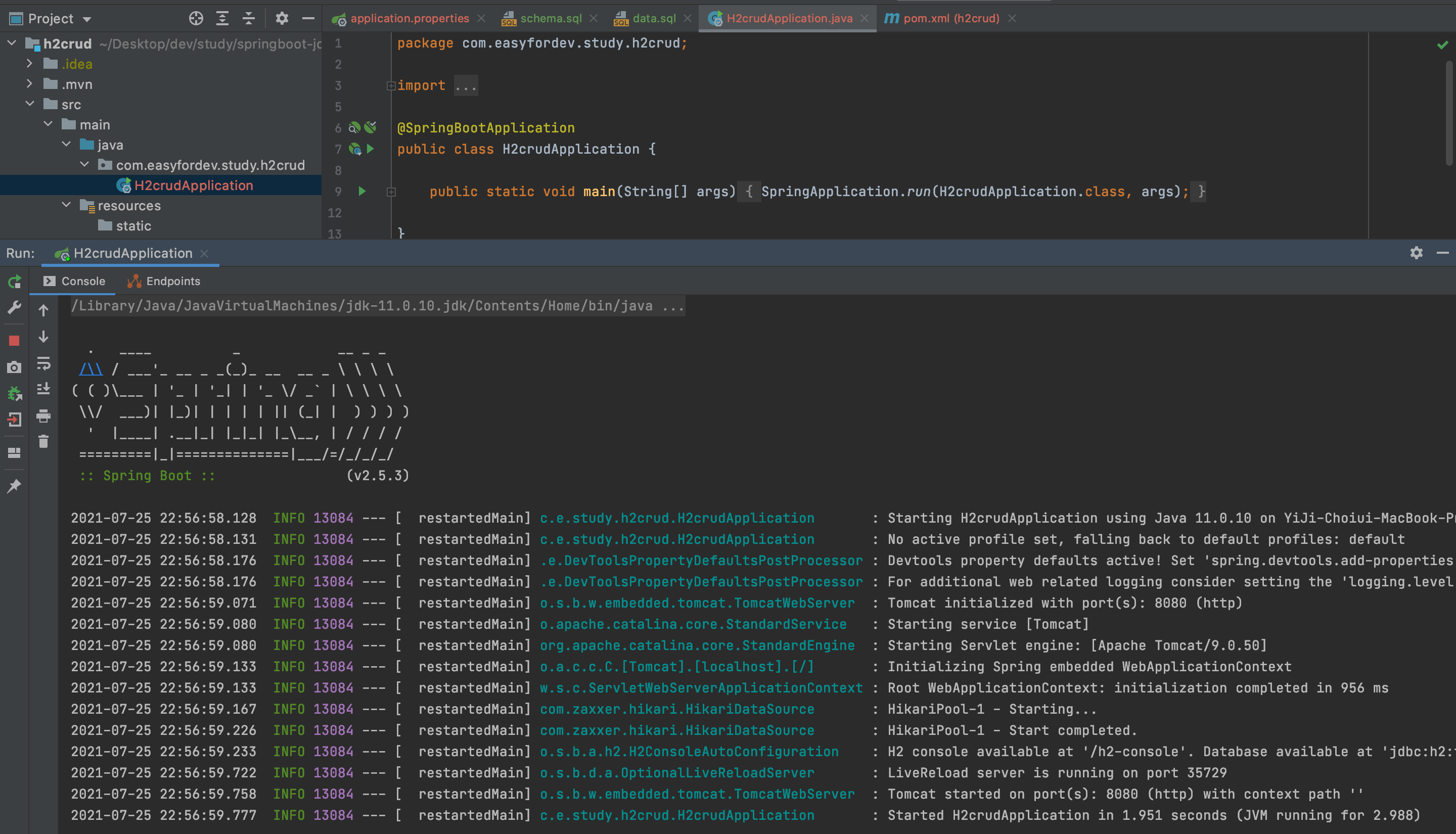 지난 글에서 설치한 H2 Database를 Spring Boot 프로젝트에서 연결해서 매우 간단하게 잘 동작하는지만 확인해본다.