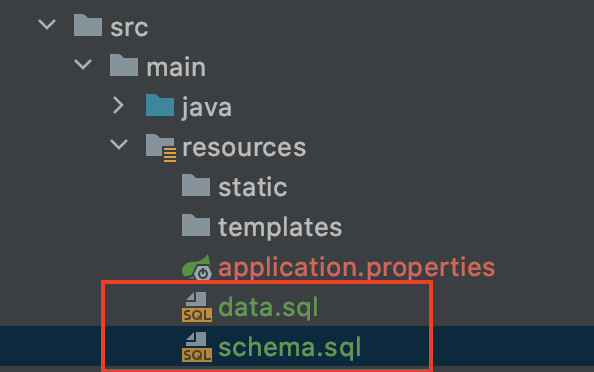 resources 디렉토리 아래에 shema.sql , data.sql 파일 2개를 생성한다.